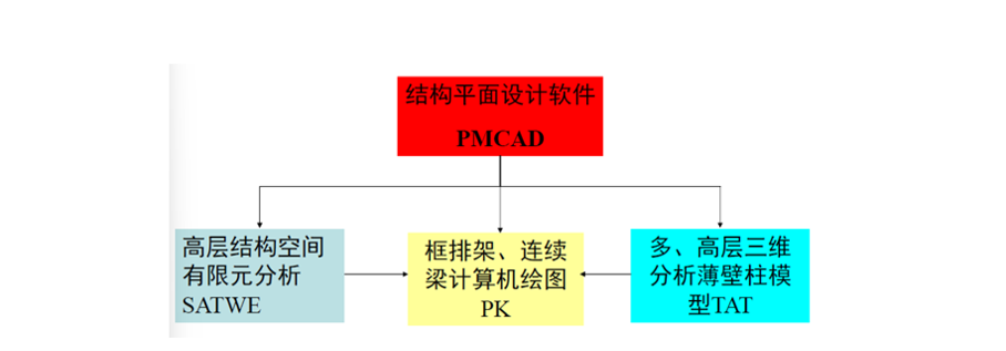 我们可以把PMCAD理解为使用PKPM设计的第一步,只有在PMCAD中建立全楼结构模型并导算荷载,我们才有可能进一步做结构分析和深化设计。下图可以很好得体现PMCAD和PKPM包含的其他软件之间的关系。