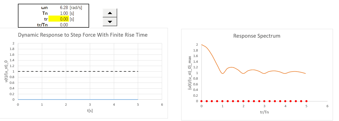□If \(t_r/T_n=1,2,3…\), velocity is zero at the end of the force-rise phase, no oscillation and \(R_d=1\).