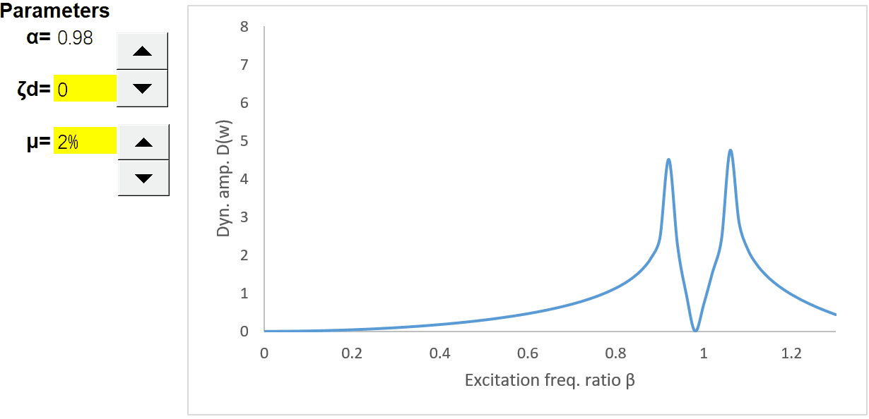 So notice that the damping ratio of TMD is not the bigger the better, which is a little counter-intuitive. In fact, as we will see later in the discussion, we are instead looking for the maximum response and optimal damping ratio of the structure.