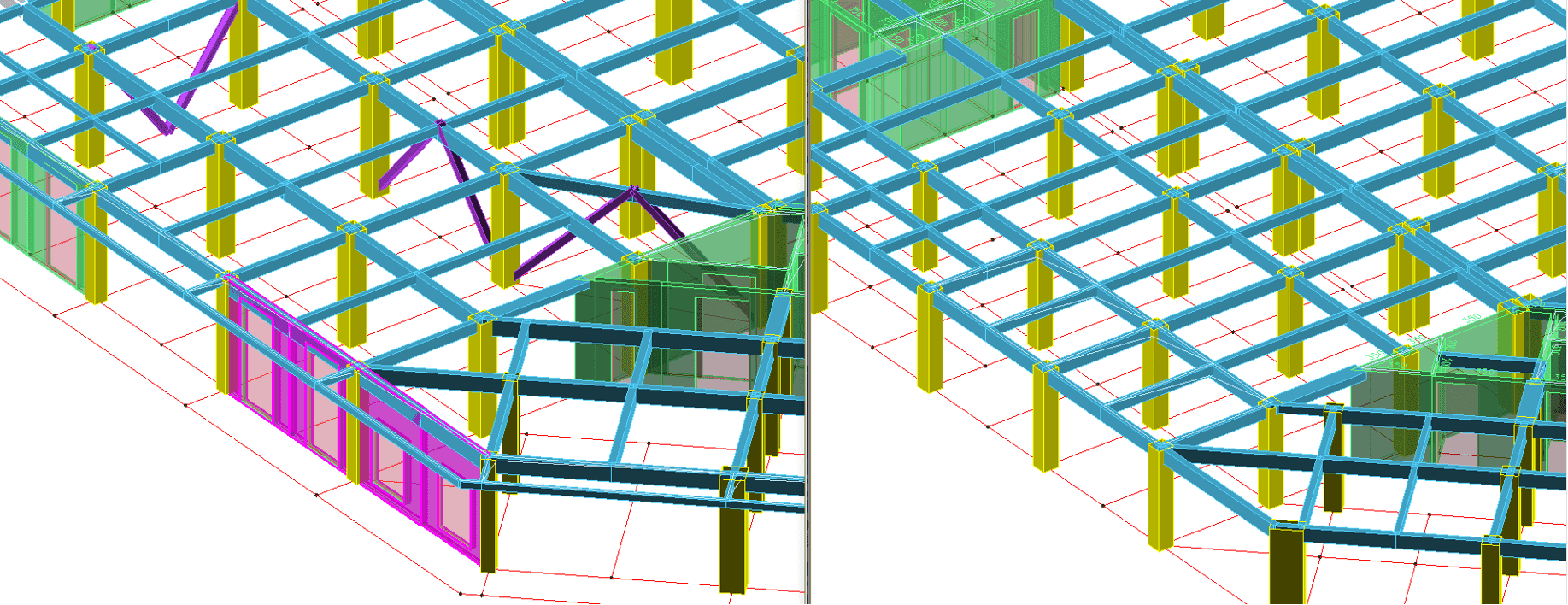 ①轻质钢结构屋盖改为→单向密肋次梁屋盖