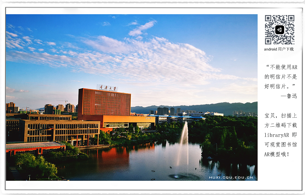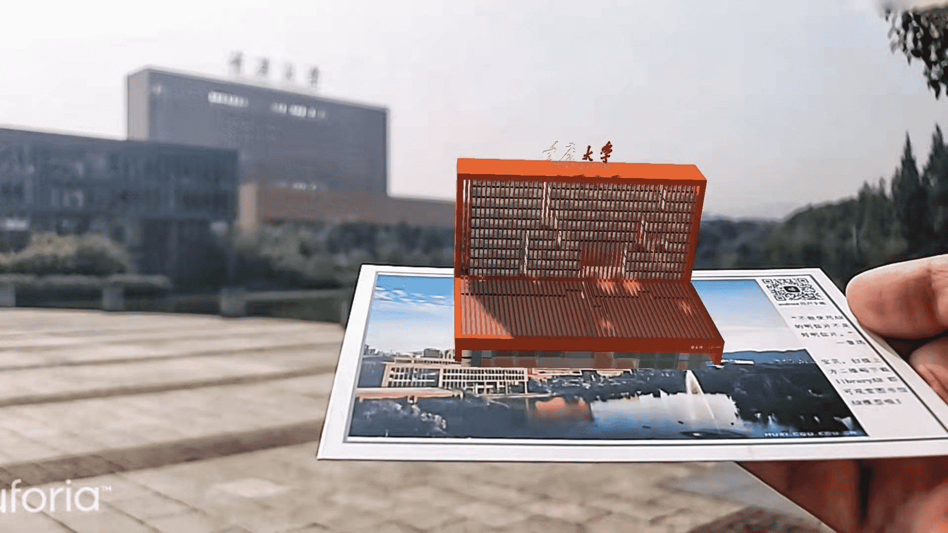 这个项目是2019年我为图协纳新所做的,当时是受哈工大录取通知书上AR二维码的启发,想做一个AR明信片,实现混合现实的功能:扫描二维码获取AR查看器→镜头大致对准明信片→在明信片上呈现虎溪校区图书馆的3D模型。